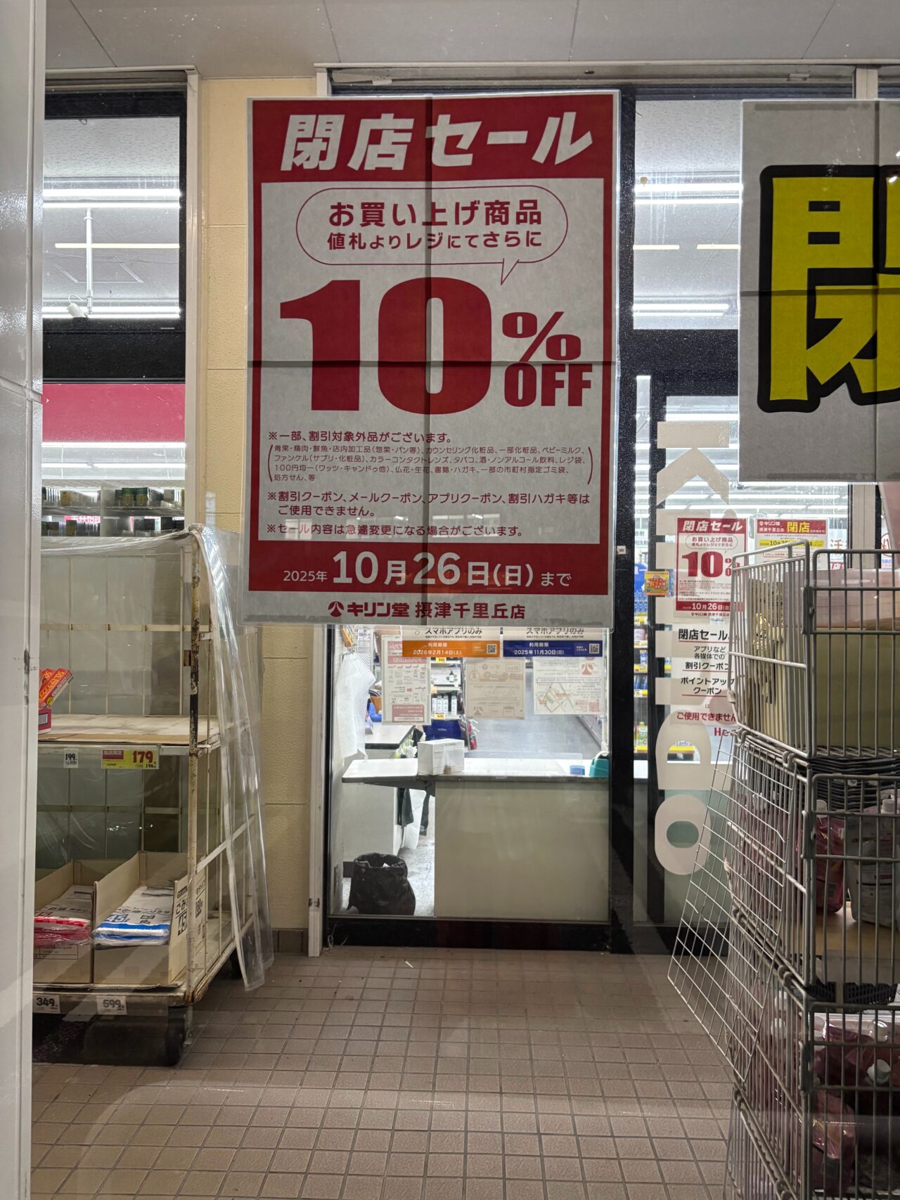 【摂津市】キリン堂 摂津千里丘店が2025年10月26日に閉店、閉店セール実施中