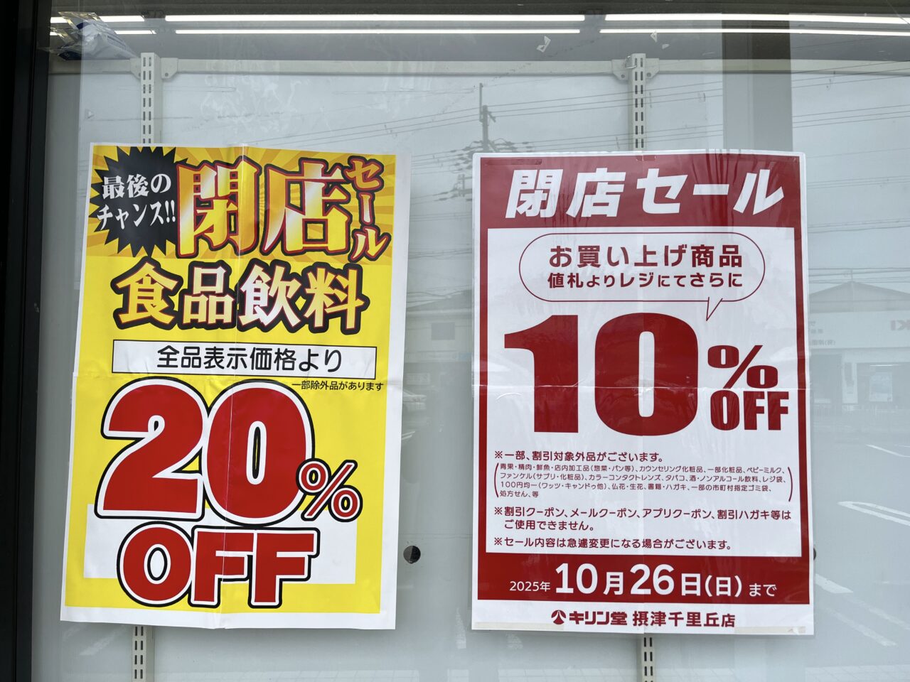 【摂津市】キリン堂 摂津千里丘店が2025年10月26日に閉店、閉店セール実施中