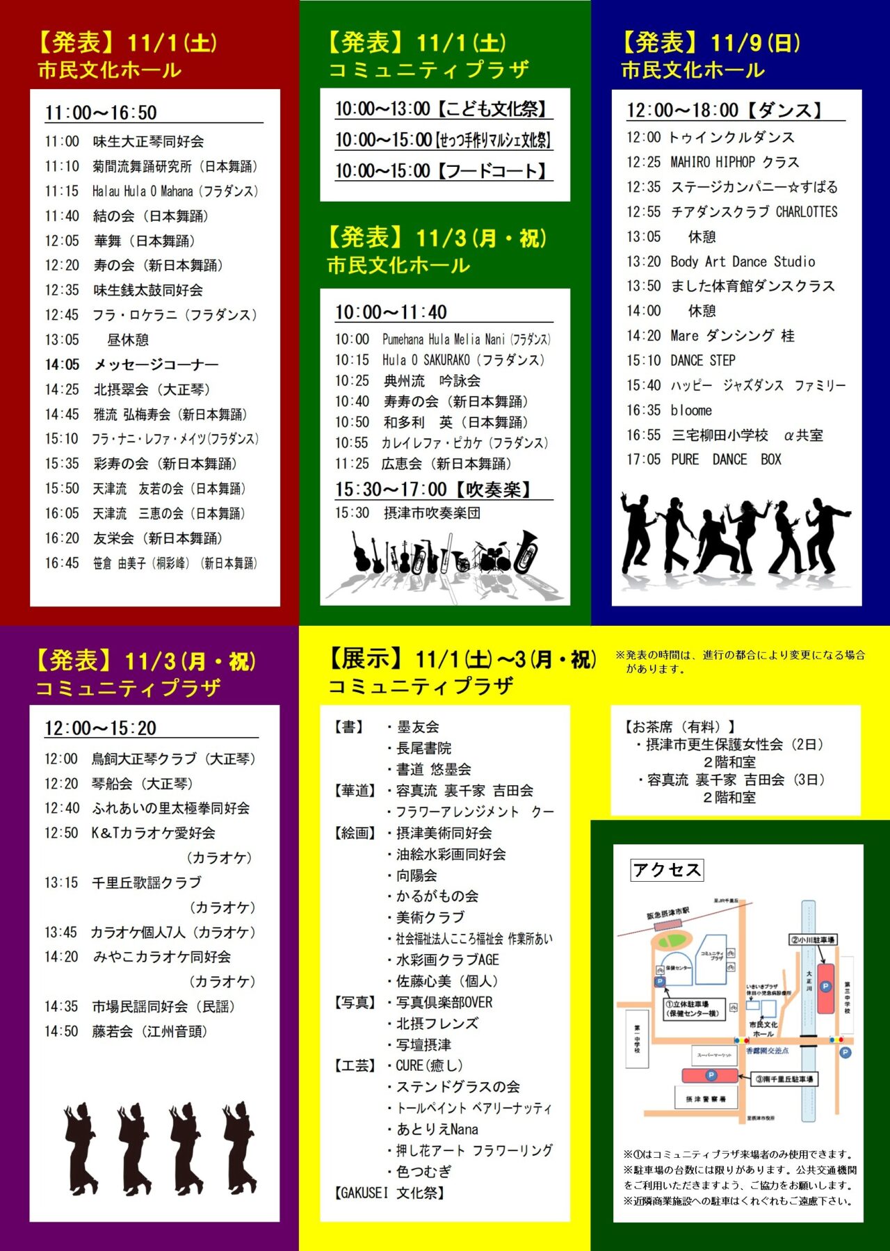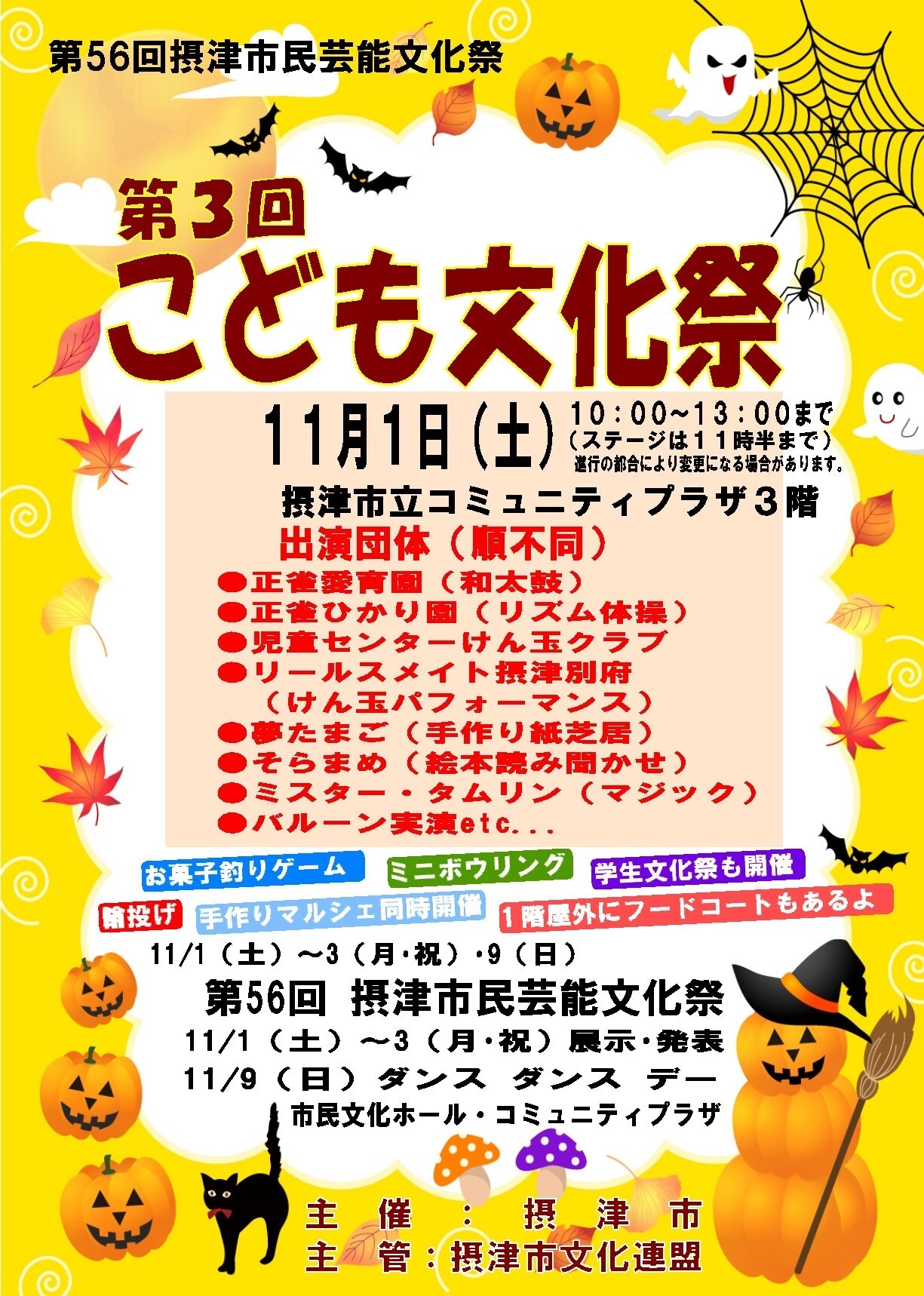 今年も「こども文化祭」「GAKUSEI文化祭」「せっつ手作りマルシェ文化祭」など、さまざまな企画が同時開催され、子どもから大人まで楽しめる文化の祭典となっています。