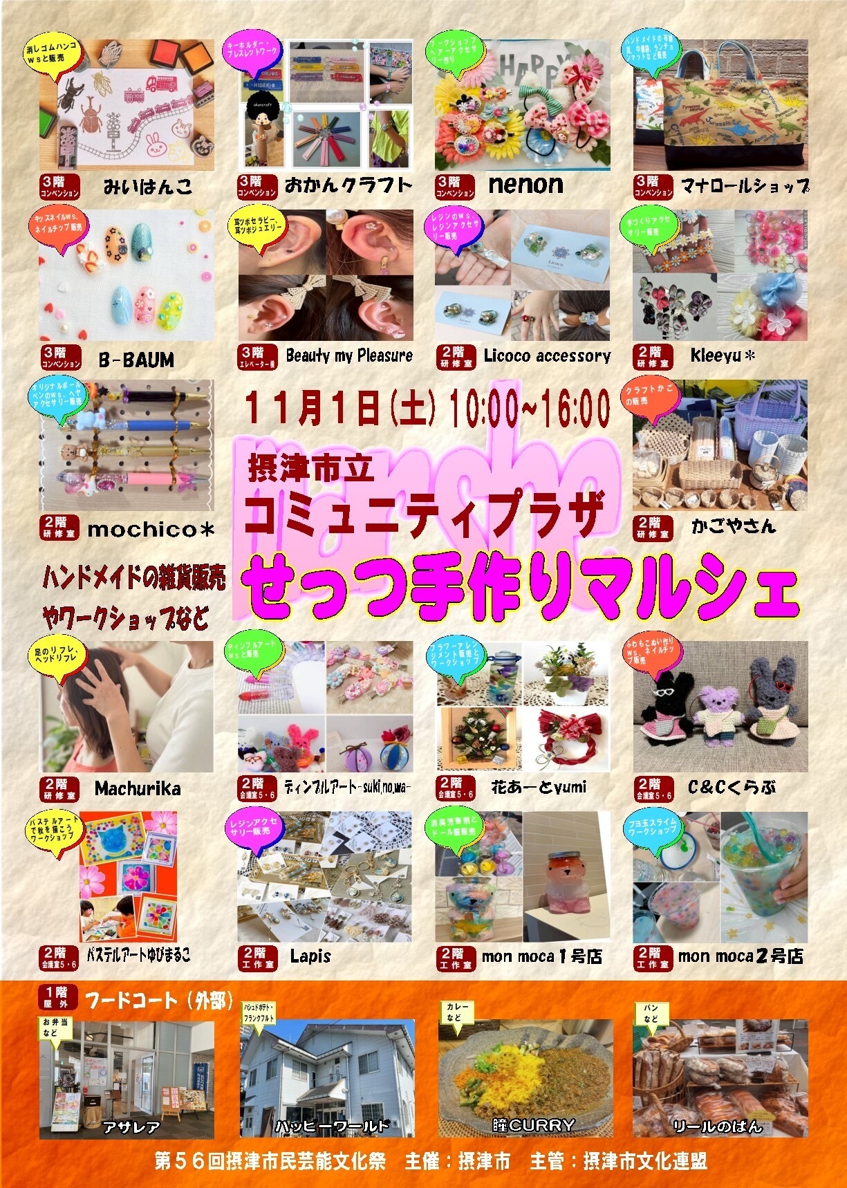 ・10:00〜15:00「せっつ手作りマルシェ文化祭」(下記詳細あり)