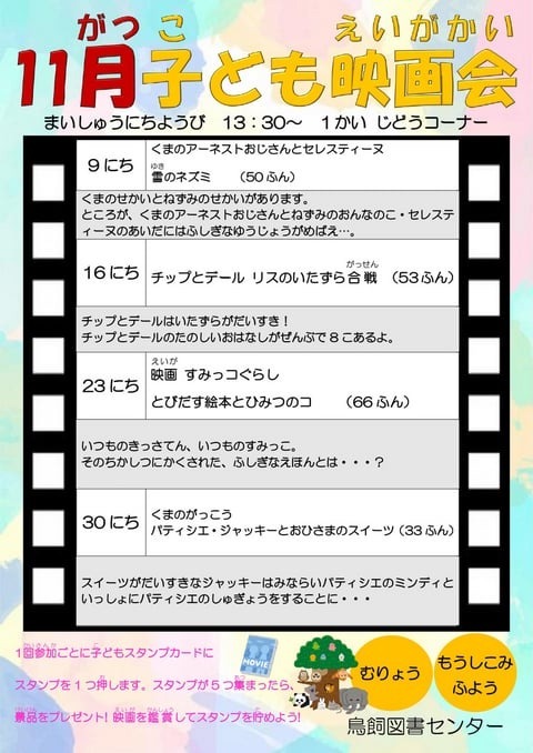 週末は図書館で映画を楽しみながら、読書の秋を満喫してみてはいかがでしょうか。