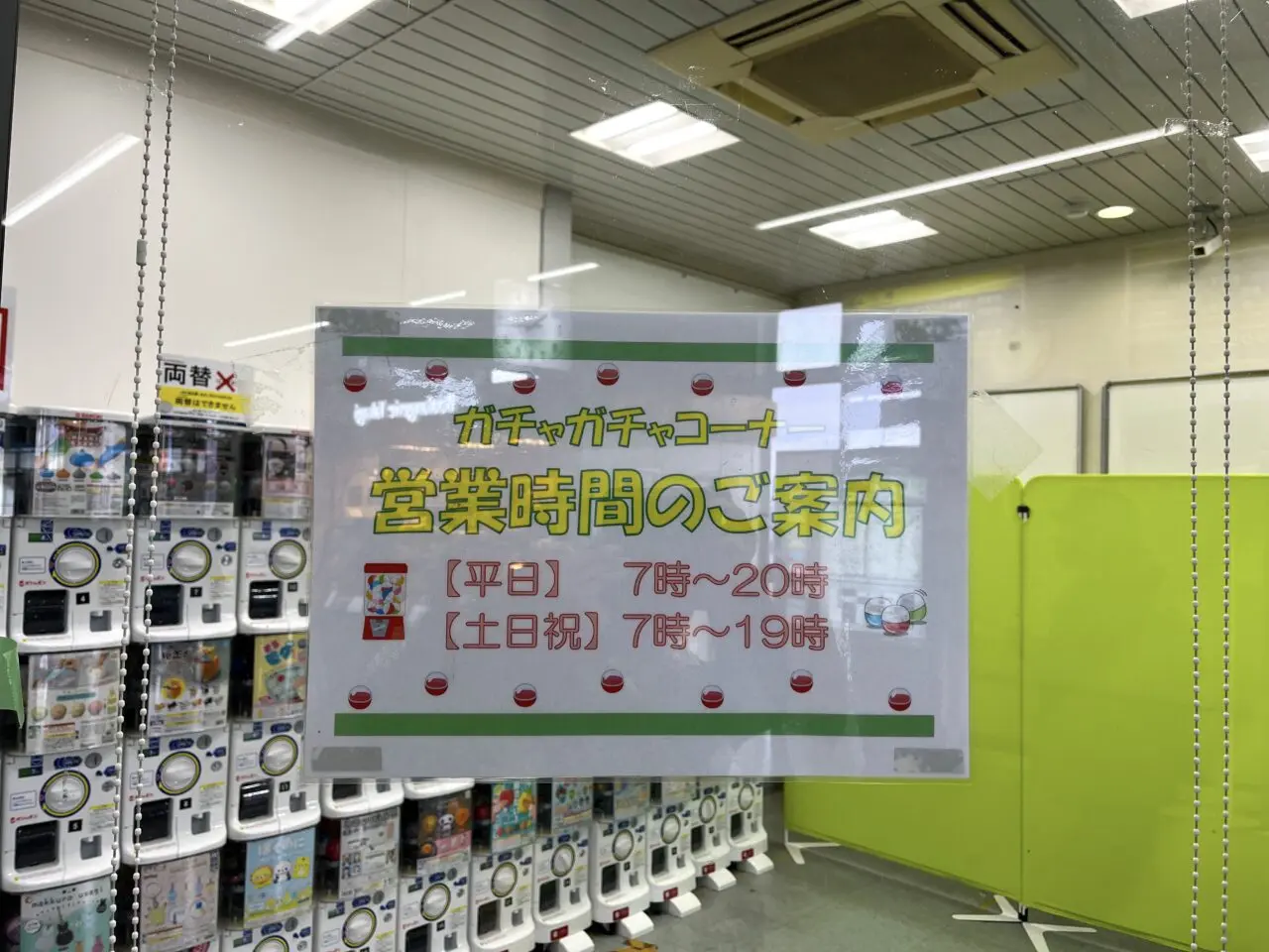 2025年11月18日時点で確認したところ、再びガチャガチャコーナーとして営業していることが分かりました。壁面には「ガチャガチャコーナー 営業時間のご案内」と記された案内が掲示されており、最近オープンしたものと見られます。