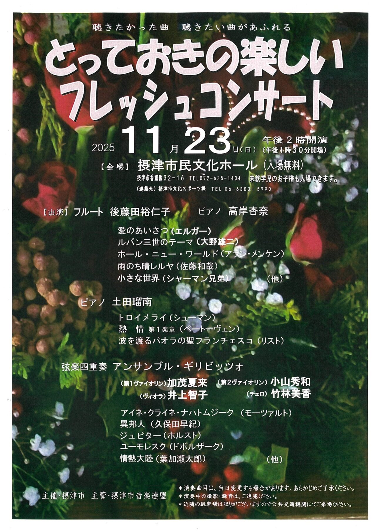 【摂津市】11/23祝日・入場無料「とっておきの楽しいフレッシュコンサート」―心温まるクラシックの午後