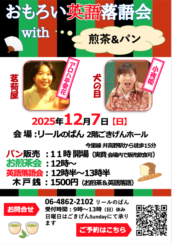 同じく北摂PORTでは「英語落語会」が予定されており、英語で演じられる落語を気軽に楽しめる機会となっています。