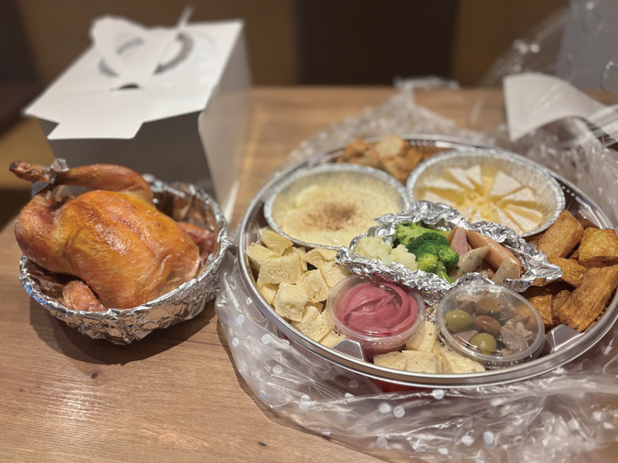 丸鴨のローストチキンとチーズフォンデュセット