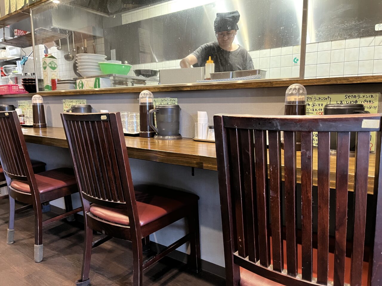 2025年12月9日、開店時刻の11時30分に訪れると、すでにお客さんの姿があり、地域の方々に愛されているお店であることが伝わってきました。カウンター奥では店主が右手のみで調理に取り組む姿が見られ、ホールを担当する奥さんは以前と変わらず素早く元気な動きでお客さんに対応されていました。