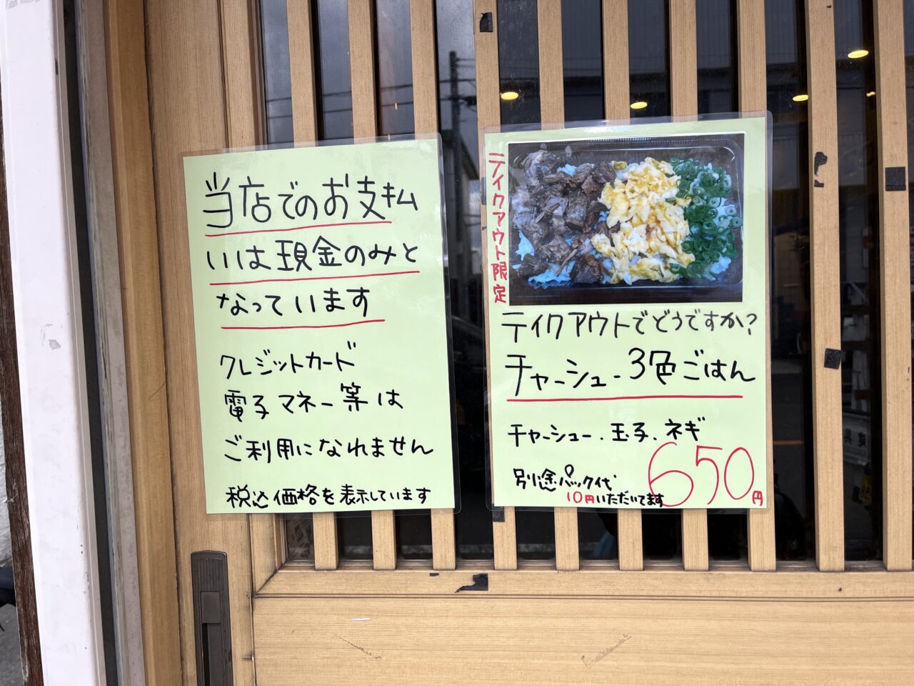 同店では年末に向けて自家製チャーシューの予約も受け付けています。500g(3,300円・税込)と250g(1,700円・税込)の2サイズが用意されており、切らずにお渡しとなります。