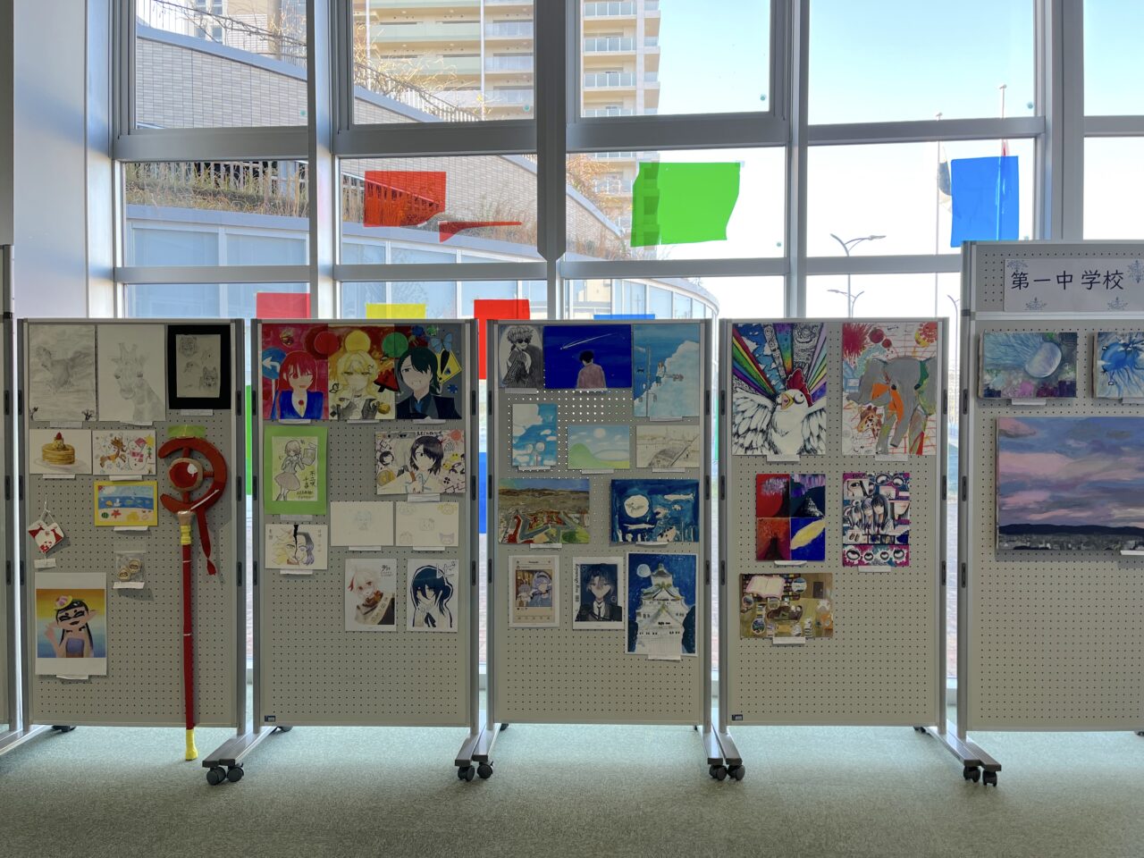 【摂津市】中学生の感性がエントランスを彩る「市内五中学校 美術部作品 交流展」開催中