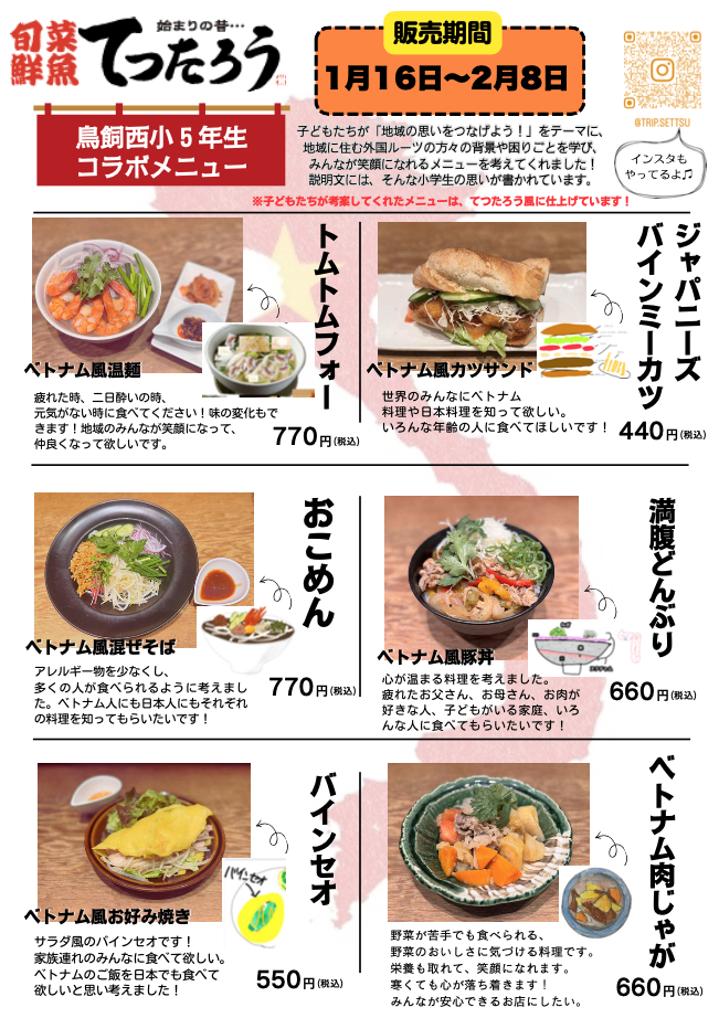 海鮮居酒屋てつたろう × 鳥飼西小学校5年生のコラボメニュー