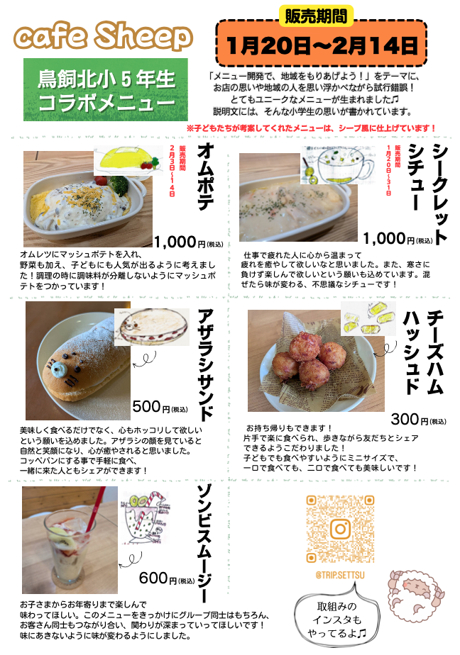 cafe Sheep × 鳥飼北小学校5年生のコラボメニュー