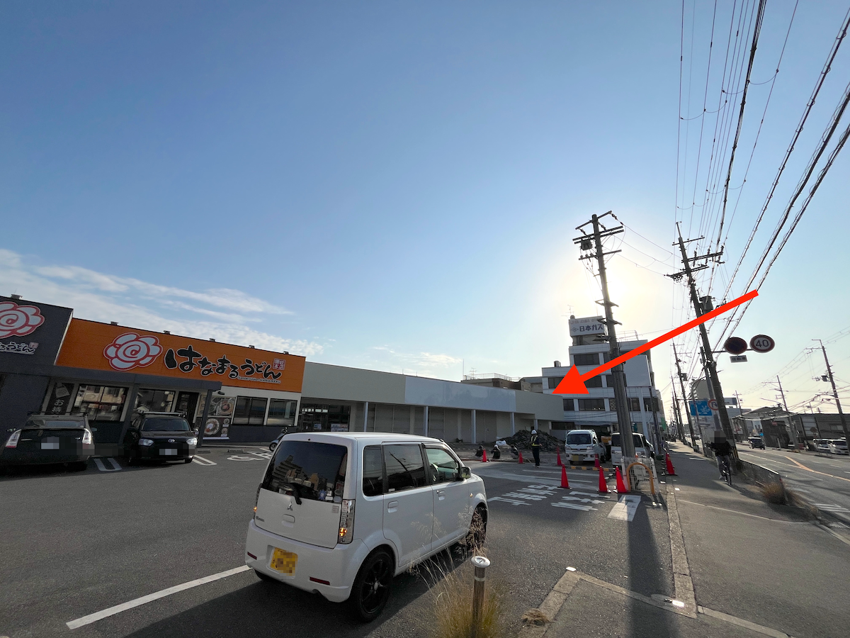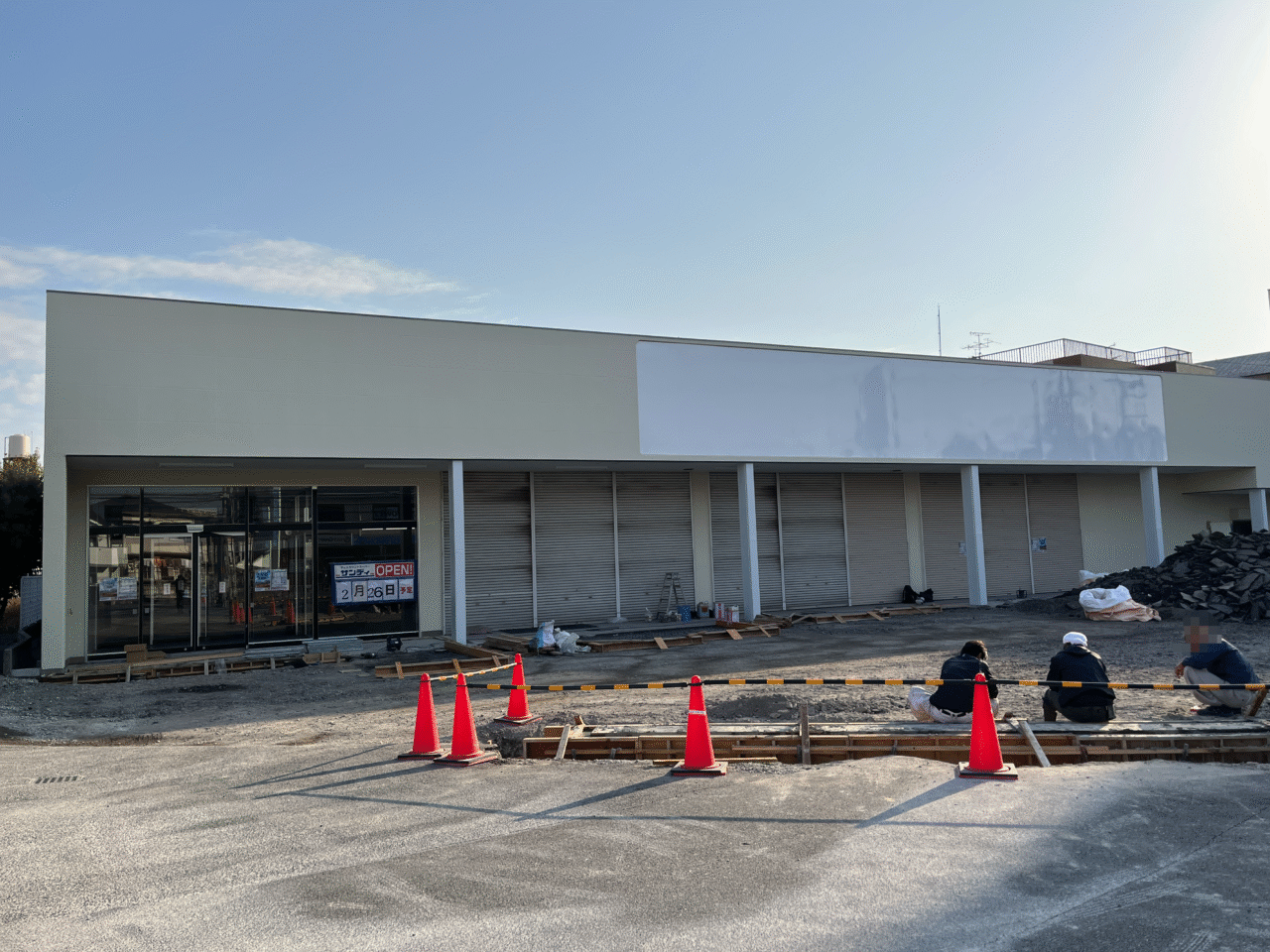1月19日に現地を訪れたところ、店舗はまだ工事中の状態でした。以前のキリン堂の看板はすでに撤去されており、壁面は白い状態になっています。駐車スペースも整備途中で、周辺には工事用の資材が見られました。