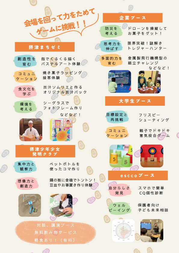 まちゼミ期間中の2月8日(日)には、摂津コミュニティプラザ3階にて「esccoフェスタ」が開催されます。