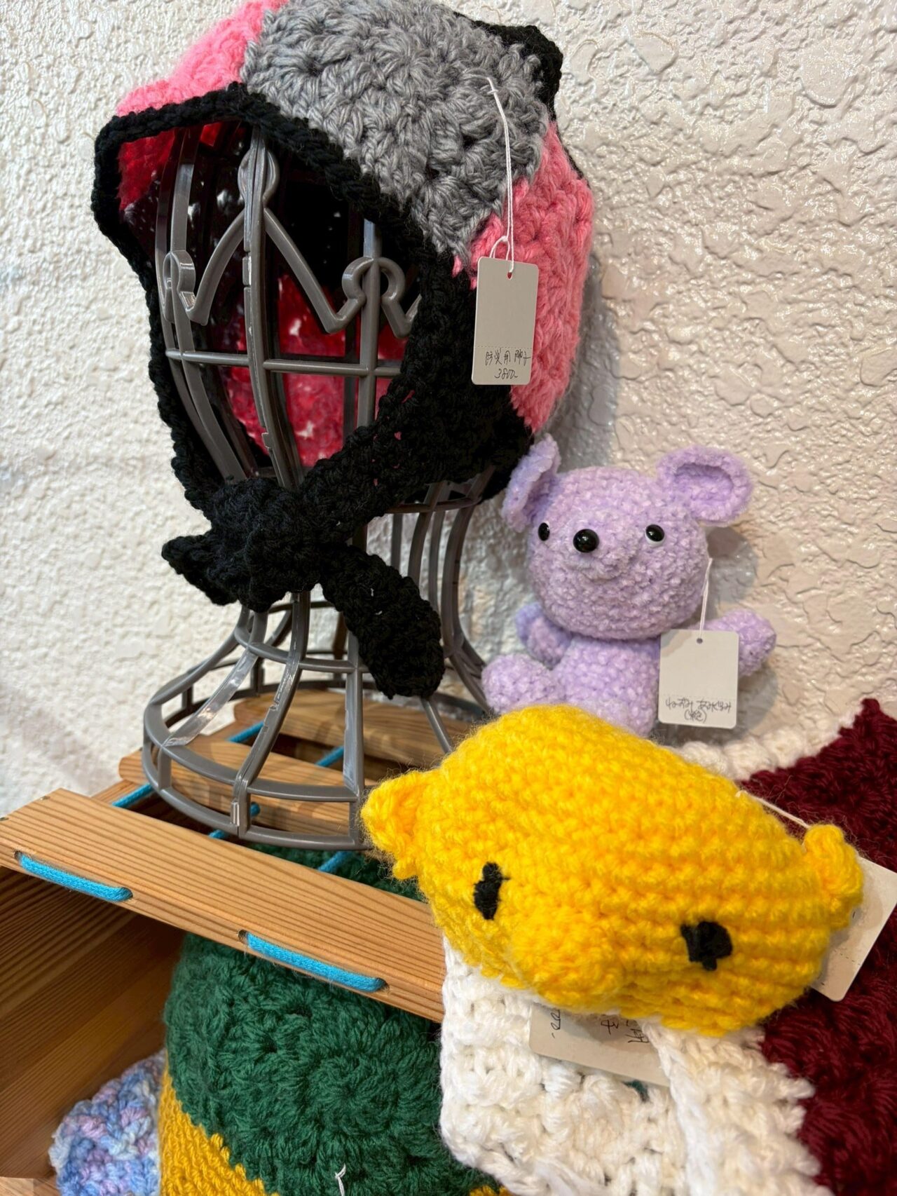 「糸のぬくもり便」は、一般社団法人OneSelfが運営する小さな手作りのお店です。ガレージを改装した店内には、長年編み続けてきた手編みの作品やハンドメイド商品が並びます。