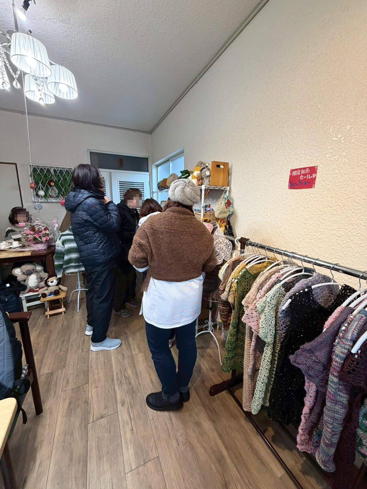 長年編み続けてきた手編みのぬくもりを地元の皆さんに届けたいという想いから生まれた「糸のぬくもり便」。初日から多くの方が訪れ、新たな地域の居場所としてのスタートを切りました。