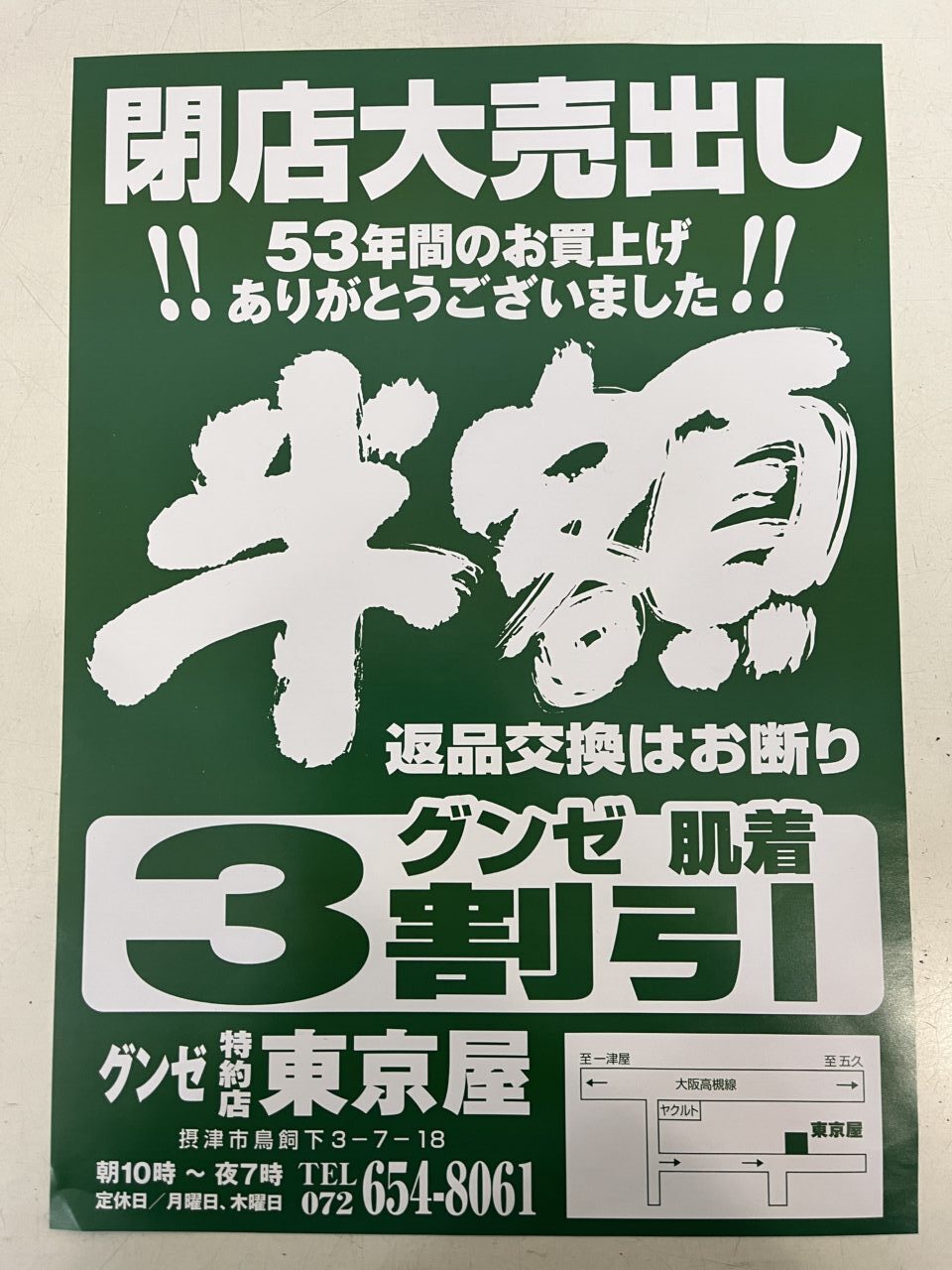【摂津市】地域に愛された衣料品店「グンゼ特約店 東京屋」が閉店大売り出し中