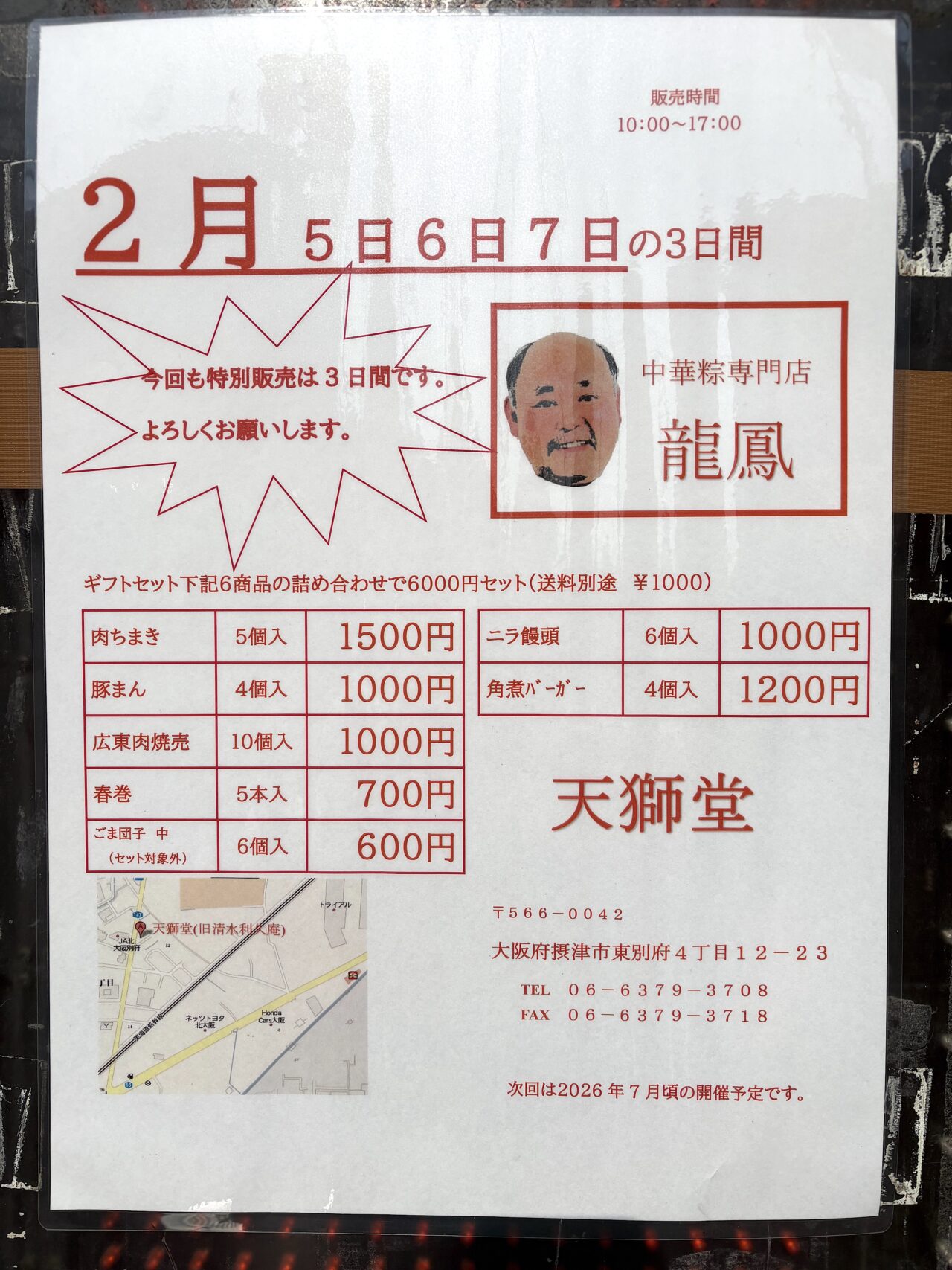 【摂津市】天獅堂摂津工場で2月5〜7日特別販売! 神戸南京町の本格中華惣菜をお得に