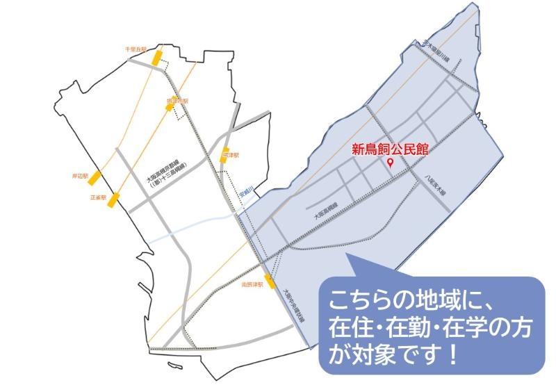 鳥飼エリア・新在家エリア・東一津屋エリアに在住・在勤・在学の方が対象です。