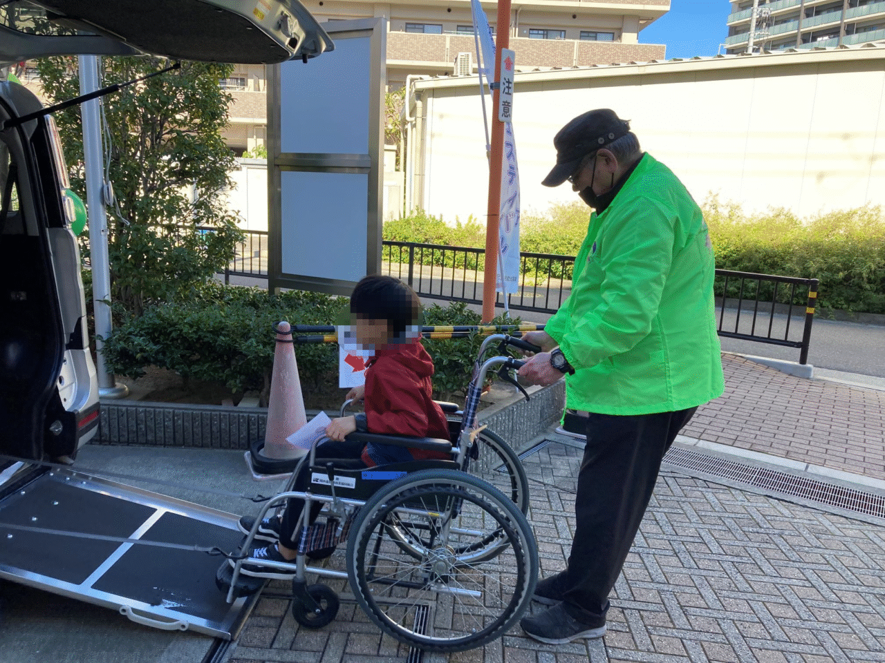 車いすのままリフト付き車両に乗る様子を実際に体験できるため、移送サービスの役割や必要性を、体感を通して知るきっかけになります。