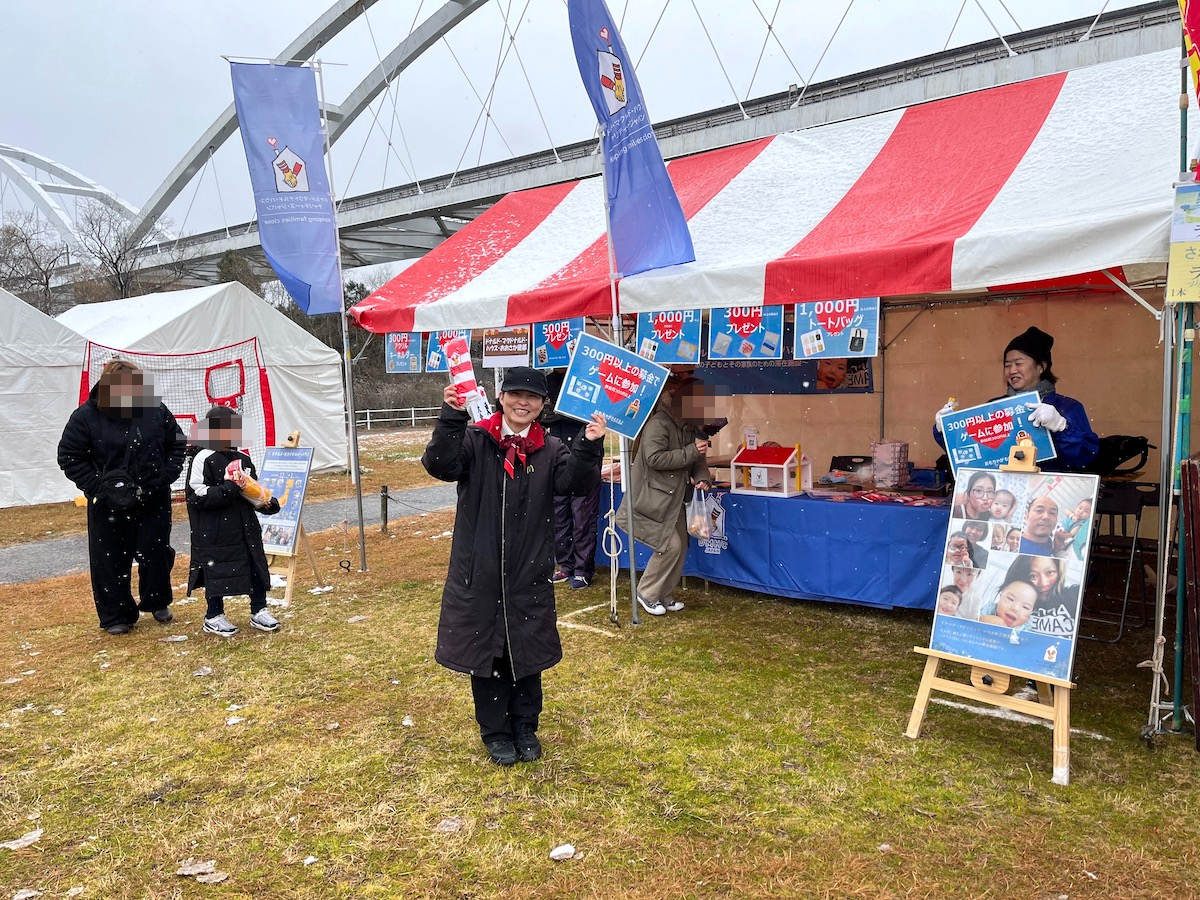 会場には地元企業による温かい出店ブースが並びました。
