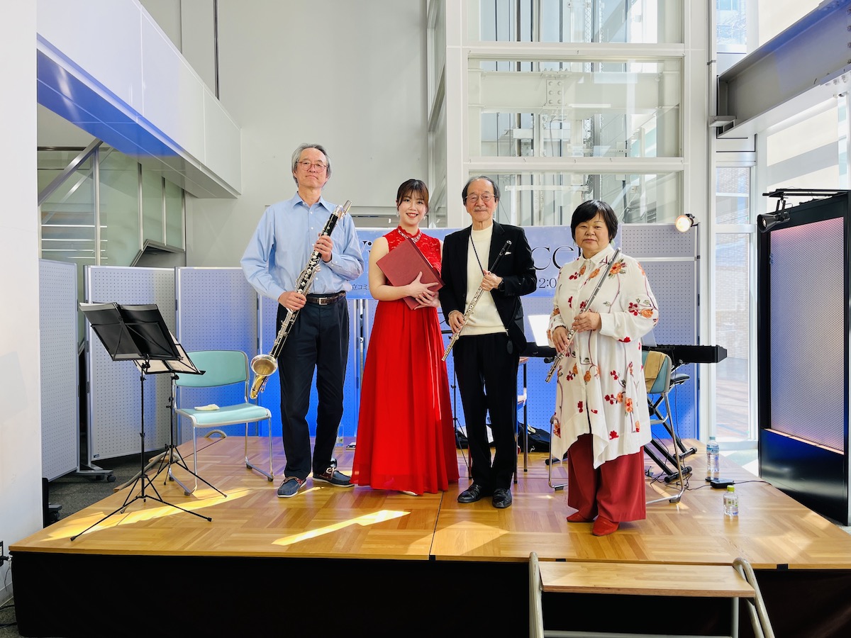 特にフルートの「頭部管」を黒色の木製に替えることでまろやかな音色になるという説明には、来場者からも感心の声が上がっていました。実際、2本のフルートの微妙な響きの違いが印象的でした。