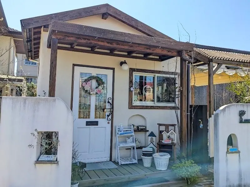 AMISH店内では布小物・エプロンドレス・ポーチ・スタイ・刺繍ブローチ・リカちゃんのドレス、ドライフラワーやプリザーブドフラワーのアレンジ、バラ柄雑貨・ガーデン雑貨・キッチンクロスなどが並びます。駐車場もありますので、お車でも大丈夫です。