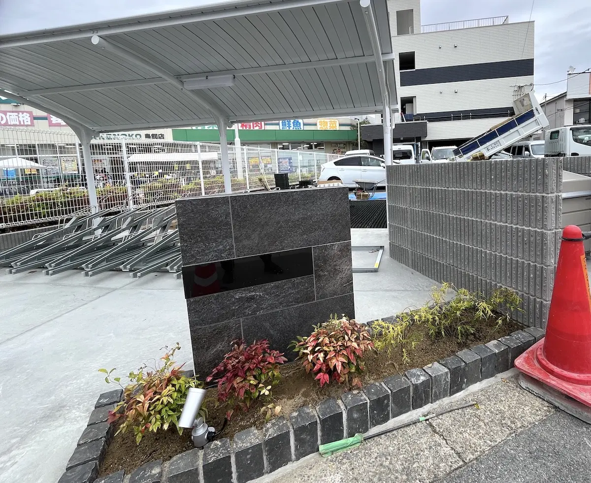 取材日(4月15日)時点では外構・植栽工事が続いており、完成に向けて最終仕上げの段階に入っているようです。