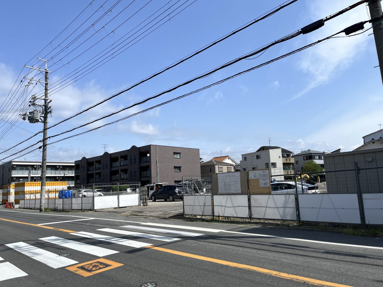 取材時点では、すでに敷地内で重機が稼働しており、造成・掘削作業が進んでいました。広々とした敷地に鉄板が敷かれ、作業員の姿も確認できます。